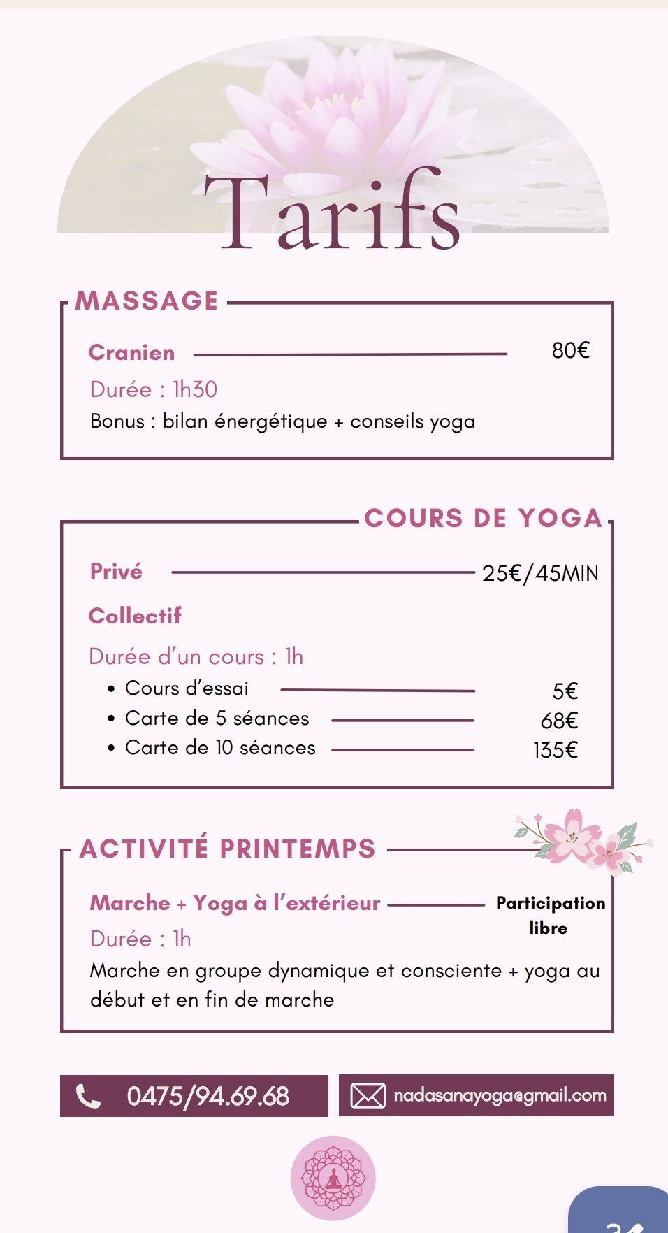 Les tarifs sont toutes taxes comprises. Payements en’liquide ou payconing.